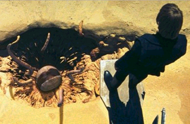 БОЛЬШАЯ ВОРОНКА КАРКУНА (Great Pit of Carkoon) Значительная впадина посреди Дюнного моря Татуина, обиталище ненасытного Сарлакка. Вырытая давным-давно чудовищем с щупальцами, Большая воронка имеет около 3 метров в диаметре и крутые сыпучие склоны, по которым почти невозможно выбраться. Любой, кто приближается к воронке, неизбежно соскальзывает в подстерегающую утробу Сарлакка. Многие из недругов Джаббы Хатта были сброшены в Большую воронку Каркуна, и сам криминальный лорд погиб на этом месте во время своей необдуманной попытки убить Люка Скайуокера и Хана Соло. Расположение: посередине западной части Дюнного моря Татуина, Внешние миры. Встречающиеся виды: Сарлакк. Климат: безводный и засушливый. Ландшафт: пустыня. Достопримечательности: пасть Сарлакка. Полное описание Об истории Большой воронки Каркуна известно мало, за исключением того факта, что создана она была Сарлакком. Точный возраст этого чудища неизвестен, однако считается, что Большая воронка существовала за несколько десятков лет до того, как Джабба стал использовать её для своих злых целей. Большая воронка расположена в нескольких километрах к западу от Мос Эйсли и к северу от дворца Джаббы, посередине западной части Дюнного моря.