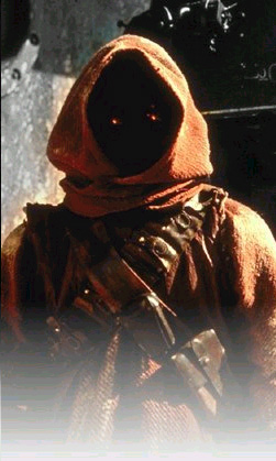 ДЖАВЫ (Jawa) Маленькие, дурно пахнущие гуманоиды, обитатели Татуина, собирающие в пустыне потерянных дроидов, разбитые звездолёты и всякий мусор. Джавы носят длинные коричневые хламиды с большими капюшонами, из-под которых видны только их ярко сверкающие глаза. Они путешествуют по пескам в гиганских допотопных песчаных краулерах и разговаривают на едва вразумительной тарабарщине. Раз в год все кланы джав собираются в Дюнном море на толкучку, где обмениваются вещами и рассказами. Планета: Татуин. Рост: 0,9 - 1,3 м. Диета: неизвестно. Характер: забавные, но пугливые. Особенности: поражающая разборчивость в механизмах и способность говорить на секретном языке, понятном только джавам. Полное описание Один из двух разумных видов Татуина, джавы прекрасно приспособились к жизни на песчаной планете. Для защиты от агрессивного двойного солнца, они носят грубые домотканые плащи с капюшонами. Чтобы обороняться от бродячих тускенских рейдеров и крэйт-драконов, эти маленькие гуманоиды путешествуют в гигантских гусеничных транспортах - песчаных краулерах. Джавы живут в небольших кланах. В каждом песчаном краулере помещается до 300 джав, а также дроиды и другие механизмы, которых эти существа собирают, ремонтируют и продают. Так как на Татуине мало воды и пищи, джавы научились добывать воду из трубчатых цветков и питаться тыквой хабба, довольно неудобоваримым плодом. Джавы разговаривают тоненькими дребезжащими голосами, и их трудно понять. Если джава говорит быстро, его способен понять только другой джава. Джавы придают большое значение родственным связям. Родословные древа тщательно записываются. Хотя большинство джав остаётся со своими кланами, некоторые избирают самостоятельную жизнь и бродят по планете, в том числе и в районе Мос Эйсли и Мос Эспы. При дворе Джаббы Хатта также было несколько джав. Дополнительная информация Джавы обожают торговаться, но никогда не просят много денег. Кредитки для них ничего не значат. Поиск, починка и перепродажа - вот смысл их жизни. ("Новое восстание", глава 19). Известны джавы своей врождённой трусостью. Очень немногие видели, как джавы выглядят без своих плащей цвета глины. Они - коллективные существа: небольшими группами собирают всё и вся, что можно перепродать хоть кому-нибудь. Некоторые ксенологи полагают, что джавы имеют неорганическое происхождение. Обычно температура тела у джав - 46,7 градусов по Цельсию. (Энциклопедия ЗВ в книгах "Эксмо"). За кадром На съёмках ЗВ джав играли как дети, так и лиллипуты. Они носили длинные плащи и тёмные маски, чтобы скрыть лица. Яркие, горящие глаза джав в действительности были электрическими лампочками. Каждый джава носил плотную чёрную шерстяную маску, закреплённую проволокой, на которой держались лампочки. Лампочки питались от батарей, располагавшихся в районе талии. Хотя это устройство производило потрясающий эффект, с ним было множество проблем, ибо лампочки имели тенденцию мигать, потухать или вовсе перегорать. Язык джав, придуманный Беном Бёрттом (Ben Burtt), является смесью зулусского и суахили.