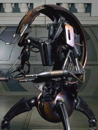 ДРОИДЕКА ДРОИД-УНИЧТОЖИТЕЛЬ (Droideka Destroyer Droid) Тяжеловооружённый дроид, способный превращаться в большое металлическое колесо, чтобы преследовать свою цель. Дроидеки, или дроиды-уничтожители, вооруженые мощными сдвоенными лазерными пушками, - очень мобильное трёхногое оружие, защищённое персональным защитным полем. Для выслеживания жертв они используют разнообразные сенсоры и сканеры; в битве они безжалостны. Детище покрытых хитином коликоидов (Colicoid), дродек можно найти на борту звездолётов Торговой федерации или сражающимимся рядом с боевыми дроидами в армии дроидов. Основной производитель: коликоиды с Коллы VI (Colla VI). Программирование: уничтожать назначенные цели. Размер: 1,83 метра в высоту. Подробное описание Хотя основу армии Торговой федерации всегда составляли боевые дроиды, многие высокопоставленные чиновники осознавали необходимость более серьёзного оружия. Заказ на создание смертельно опасных дроидек поступил коликоидам, жителям Коллы IV. Коликоиды - дикий и кровожадный народ. Система Колла, расположенная во Внешних мирах, пользуется дурной славой за свою опасность, ибо коликоиды склонны похищать и съедать пришельцев - обычай, не внушающий Республике тёплых чувств по отношению к этой расе. Инженеры-коликоиды создали дроидек по свеому подобию. Как и дроидеки, коликоиды способны сворачиваться в плотно сжатые шары. В таком виде они поджидают жертву и, внезапно атакуя, застают её врасплох. Дроидеки защищены закалённой бронзиумовой бронёй, а также великолепным персональным защитным полем. Мини-реактор питает все системы, а ряд сенсоров позволяет дроидеке вести прицельный огонь. Так как дроидеки предназначены только для одной функции, им не нужны манипуляторы, и их верхние конечности оканчиваются сдвоенными бластерами. Дроидеки, произведённые для Торговой федерации, устроены так, чтобы получать все команды со станции управления дроидами. Однако коликоиды поняли, что это уменьшает эффективность дроида и поэтому создали несколько дроидек с программируемыми компьютерными "мозгами". За кадром Руководствуясь тем, как Джордж Лукас описывал сворачивающихся дроидек, директор по дизайну Дуг Чианг начал создавать эти механизмы с переработки утверждённого дизайна боевых дроидов. Представив боевого дроида, способного сворачиваться в шар, Чианг принялся вносить изменения в диазйн. Окончательный вариант был навеян африканскими скульптурами с короткими ногами и длинными туловищами. Как и боевые дроиды, дроидеки из "Эпизода I" были созданы полностью компьютером. Во время съёмок их роль исполняли статисты или неподвижные модели, построенные на ILM.